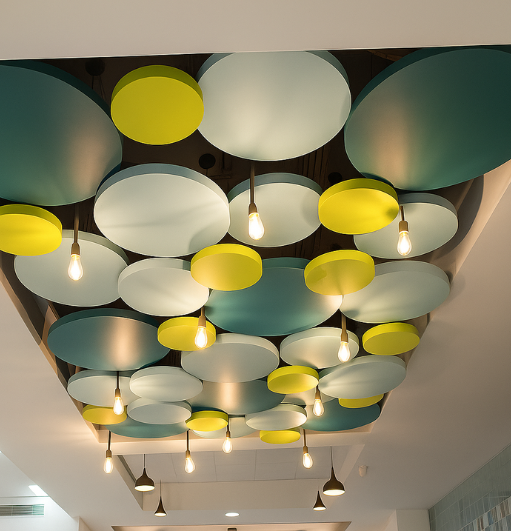 High-quality finishes, textures, and acoustic ceiling installations.